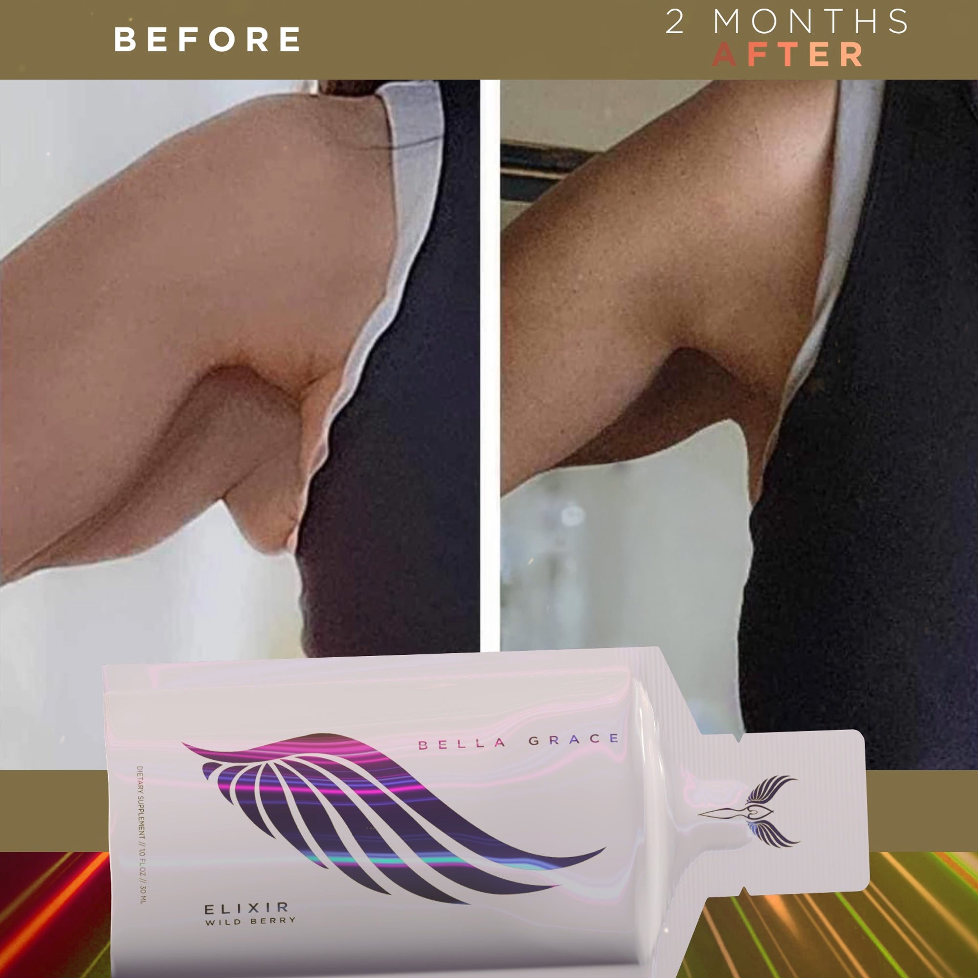 Το Elixir της Bella Grace, το απόλυτο συμπλήρωμα για την ολική ευεξία του σώματος, περιέχει αυτό που κανένα άλλο προϊόν κολλαγόνου δεν περιέχει: το πιο κλινικά αποδεδειγμένο VERISOL στον κόσμο.® Κολλαγόνο σε συνδυασμό με AstaReal® Ασταξανθίνη και Cat's Claw BG-322™. Αυτό το ιδιόκτητο μείγμα βοηθά στη ρύθμιση των διαδικασιών που αναδομούν το κολλαγόνο, καθώς και προσφέρει αντιοξειδωτικές και αντιφλεγμονώδεις επιδράσεις. 30 πακέτα ανά κουτί